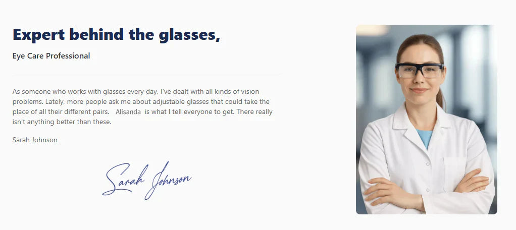 Hundreds of happy customers say that Alisanda adjustable glasses are what's coming next. These smart frames are changing everything about glasses. They're simple to use, feel great, and give you a custom fit that no other vision solution can match.