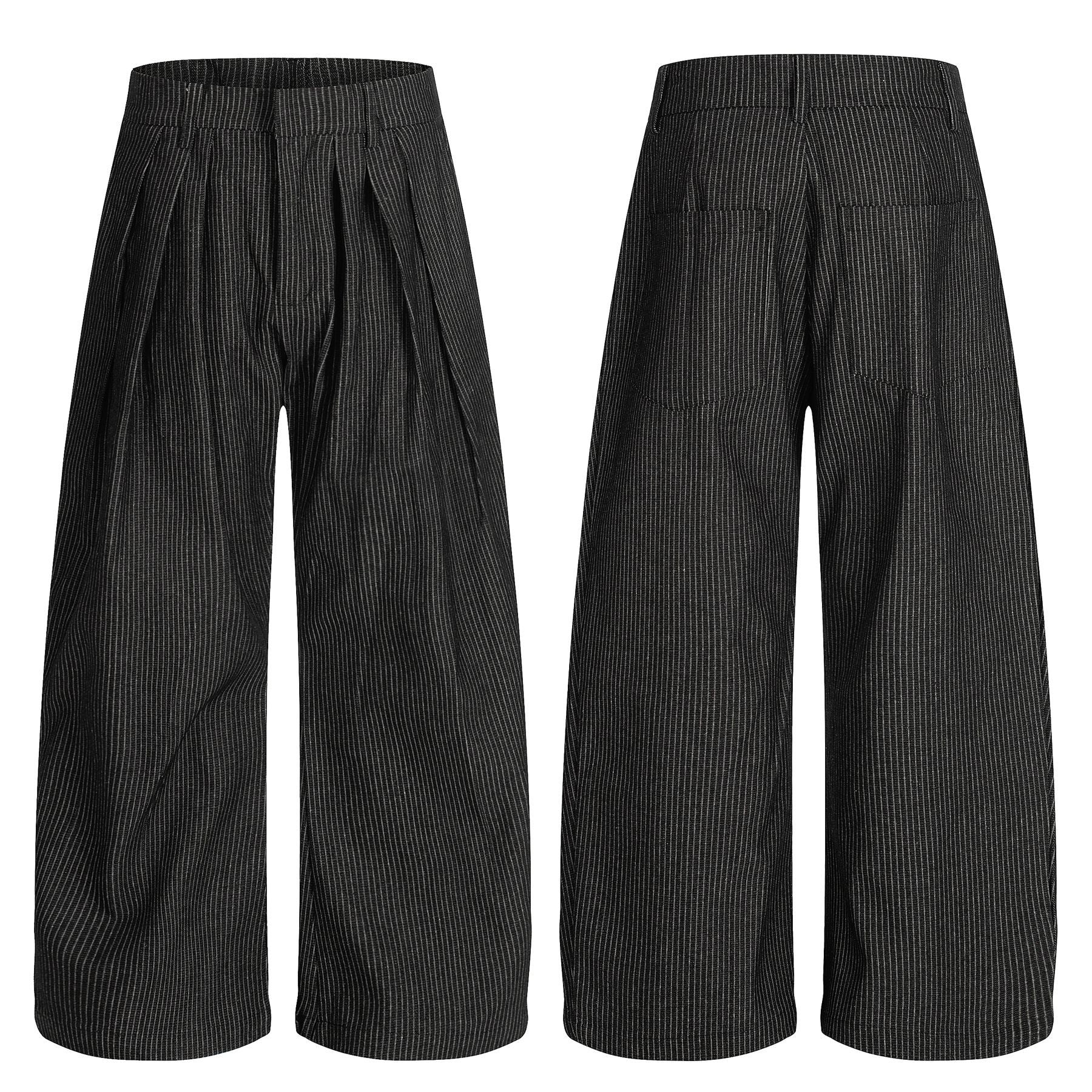 Retro Unisex Trendy Pleated Deconstructed Design Men's Loose Knife-Striped Casual Trousers
